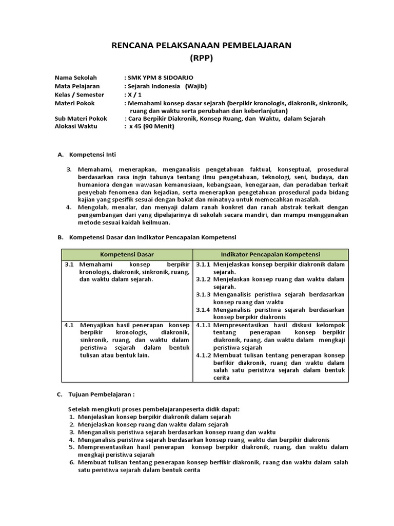 Berikut ini adalah rpp sejarah indonesia untuk smk kelas x semester 1 dan 2 berdasarkan kurikulum 2013, sudah dibuat dengan format word sehingga mudah untuk diedit sesuai kebutuhan, silakan download , jangan lupa nama sekolah ~ kumpulan rpp dan bahan ajar sejarah indonesia 2013. Asing hingga proklamasi kemerdekaan indonesia. Download rpp ktsp sejarah kelas xi ips sma untuk semester 1 dan semester 2. Rpp sejarah indonesia kelas x kd 3.1. Sebuah rpp dibatasi oleh ruang lingkupnya yaitu rpp paling luas hanya satu kd yang terdiri atas 1 indikator atau beberapa buah indikator untuk satu kali pertemuan.