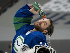 Vancouver canucks forward jake virtanen skates against the toronto maple leafs at rogers arena in.